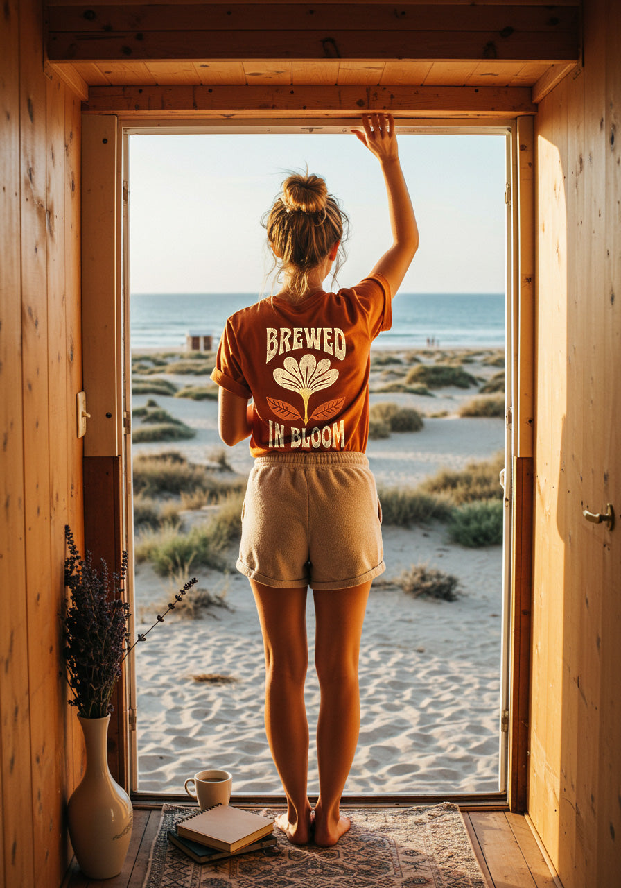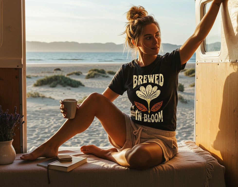 From blooming creativity to bold brews, this shirt is for the dreamers who grind, sip, and rise.