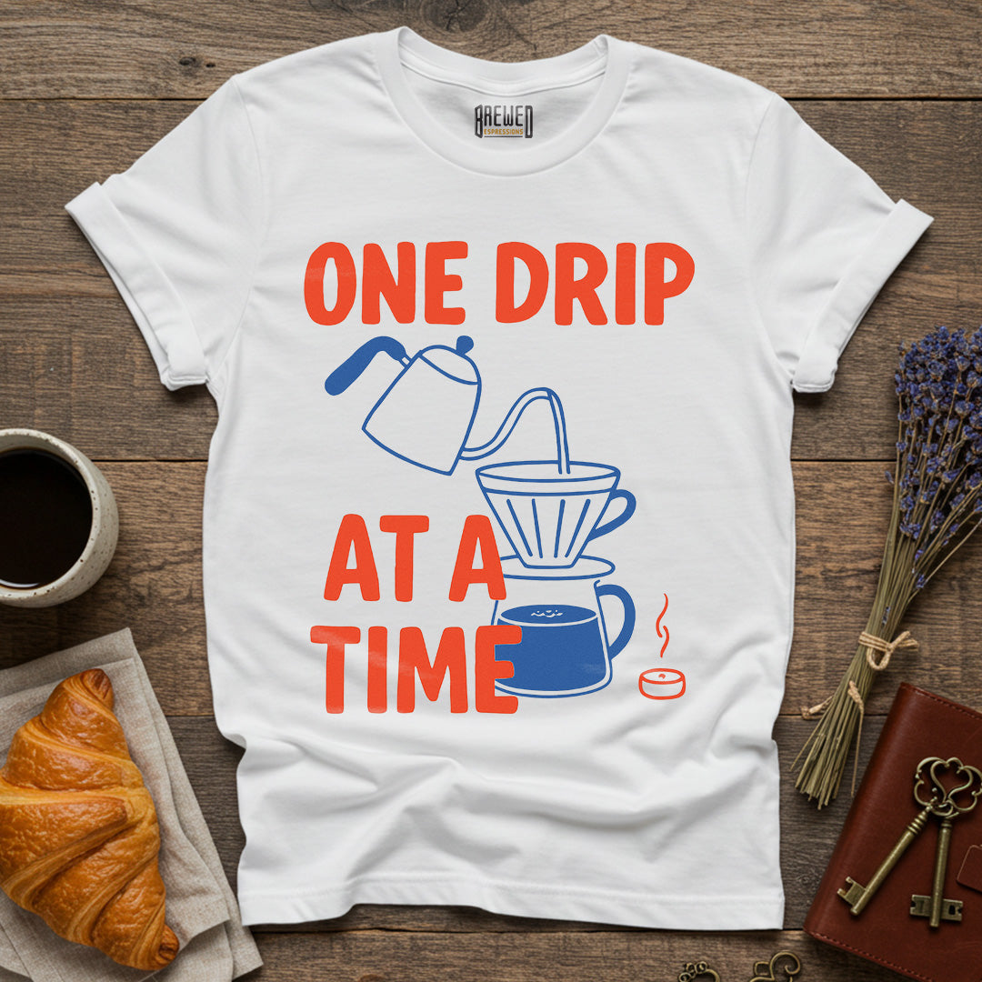 One Drip at a Time – Unisex T-Shirt, Pour Over Coffee Tee, Minimalist Slow Brew Barista Shirt