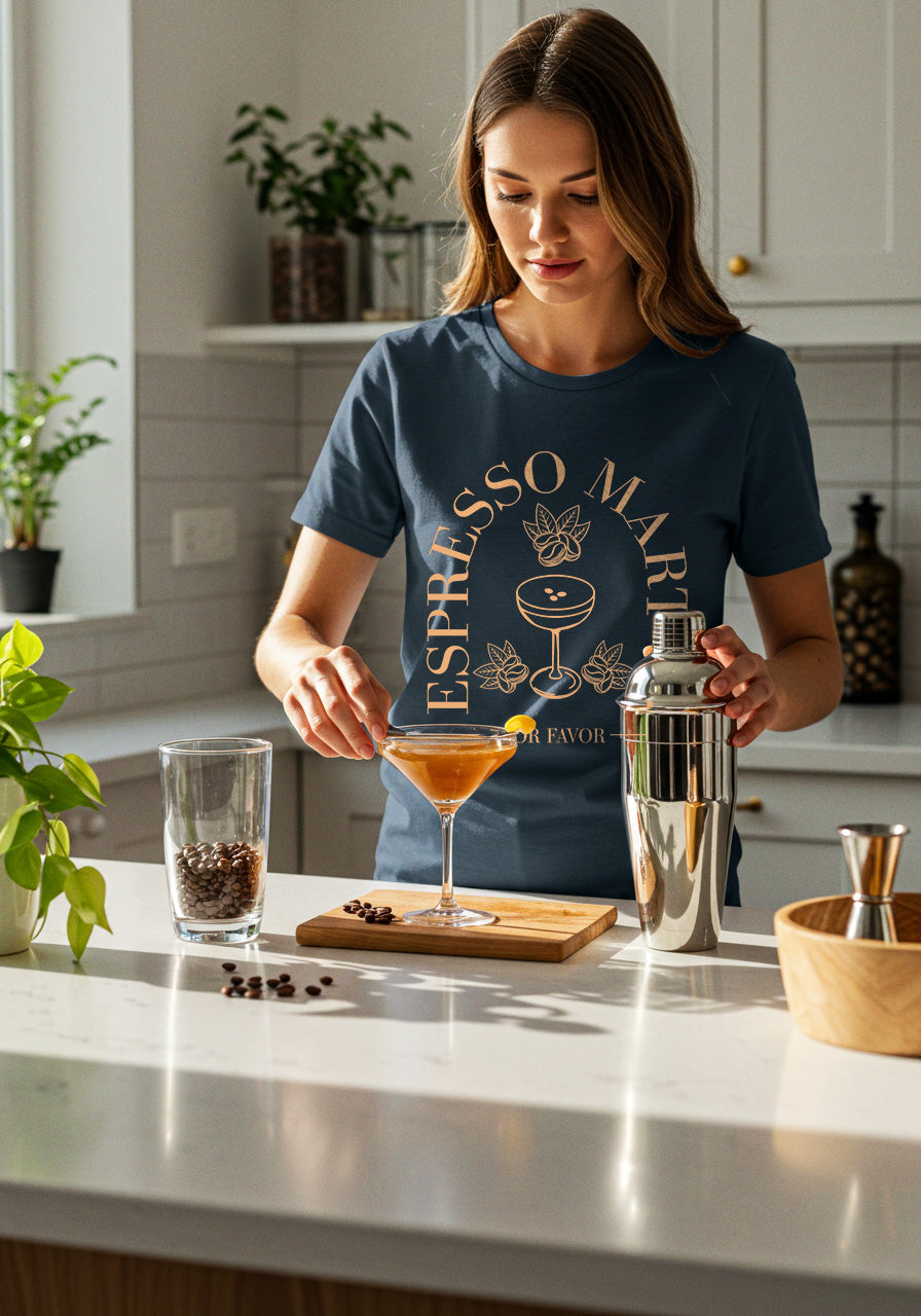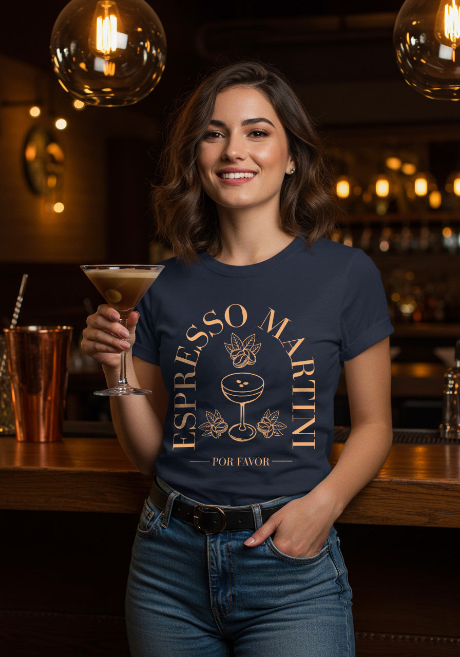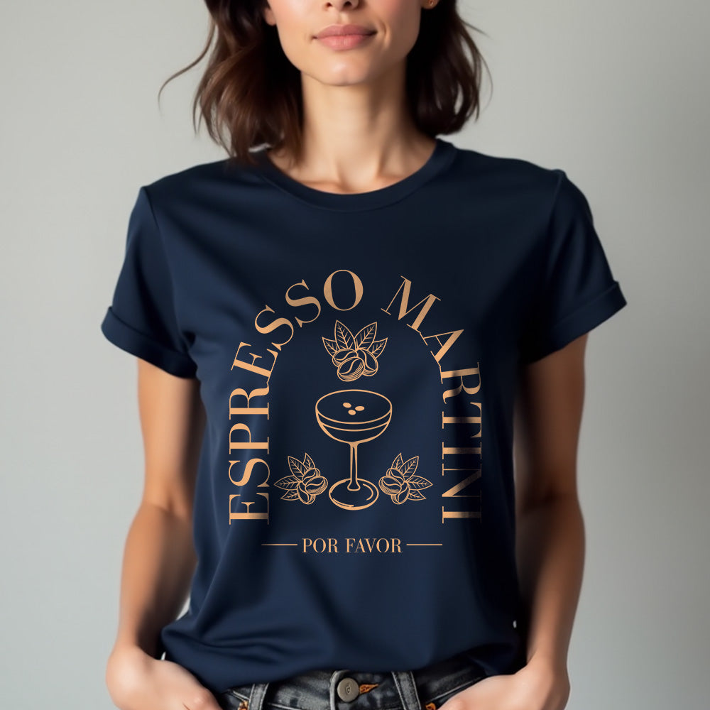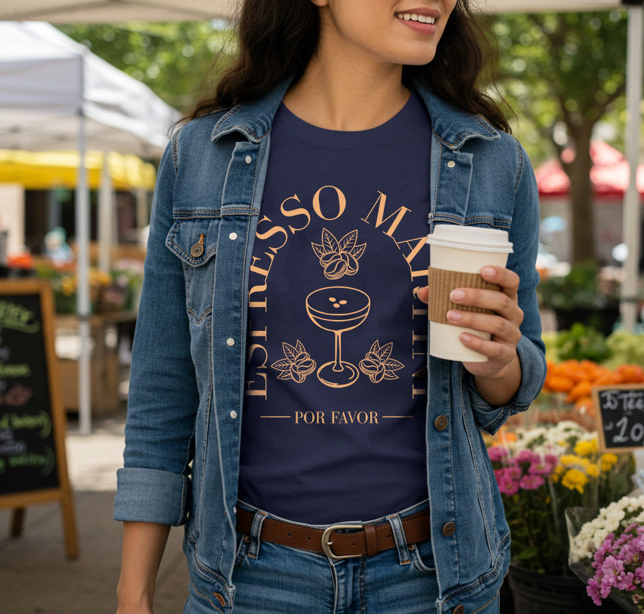 Perfect for brunch parties, after-work drinks, or whenever you want your style to say “I’m bold, I’m playful, I’m a little dangerous.” With a sleek copper-style graphic and Spanish-inspired “Por Favor” twist, this design brings the espresso martini obsession to life — no reservation needed.